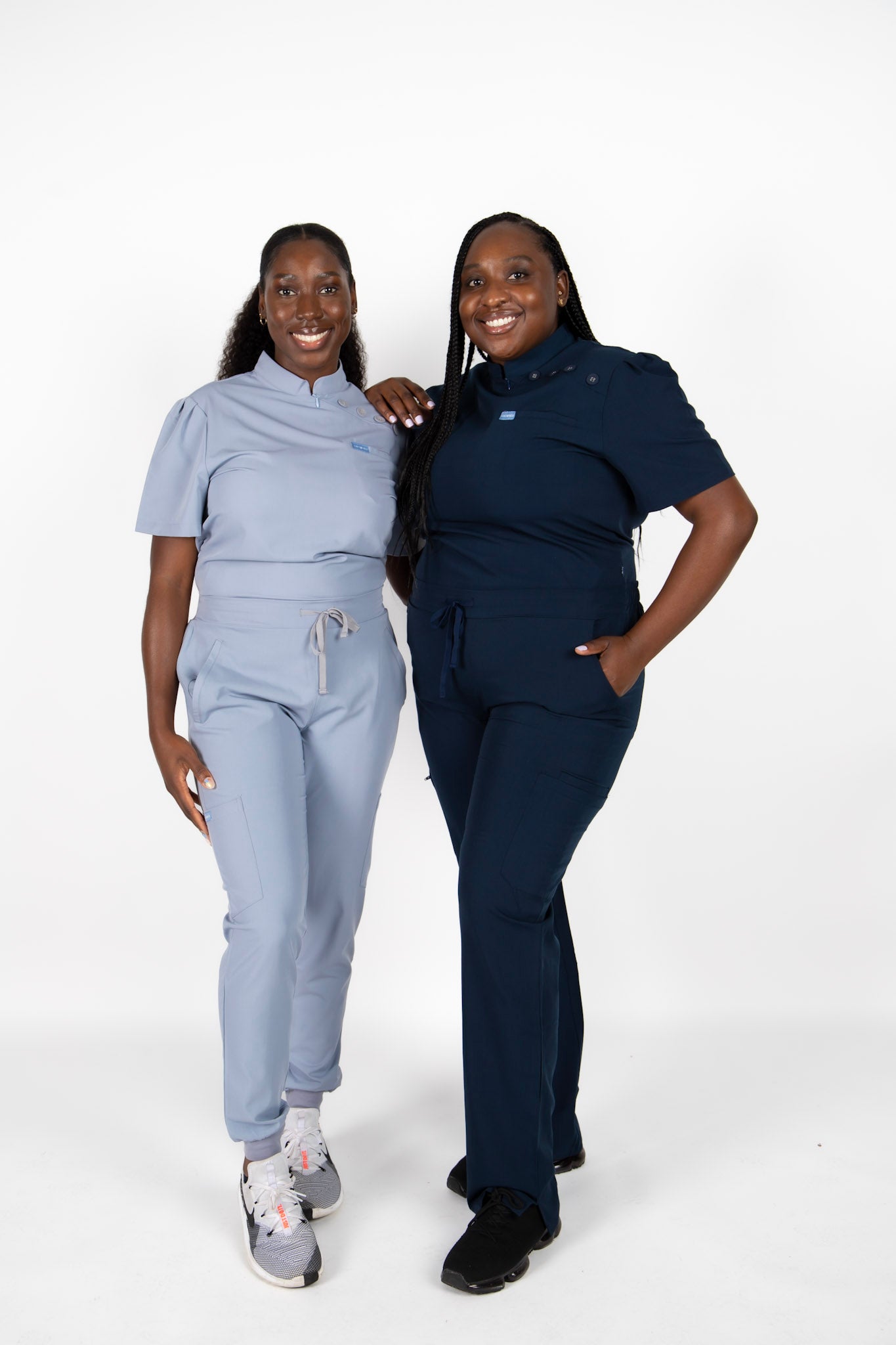 Brooklyn born, Haitian-American friends, Juliane + Astajia, had the idea to create stylish and modern scrubs for a new generation of health care providers, while finishing up their LPN program in High School. The pair went on to become Registered Nurses and decided to revisit their medical apparel idea as they worked during a global pandemic.